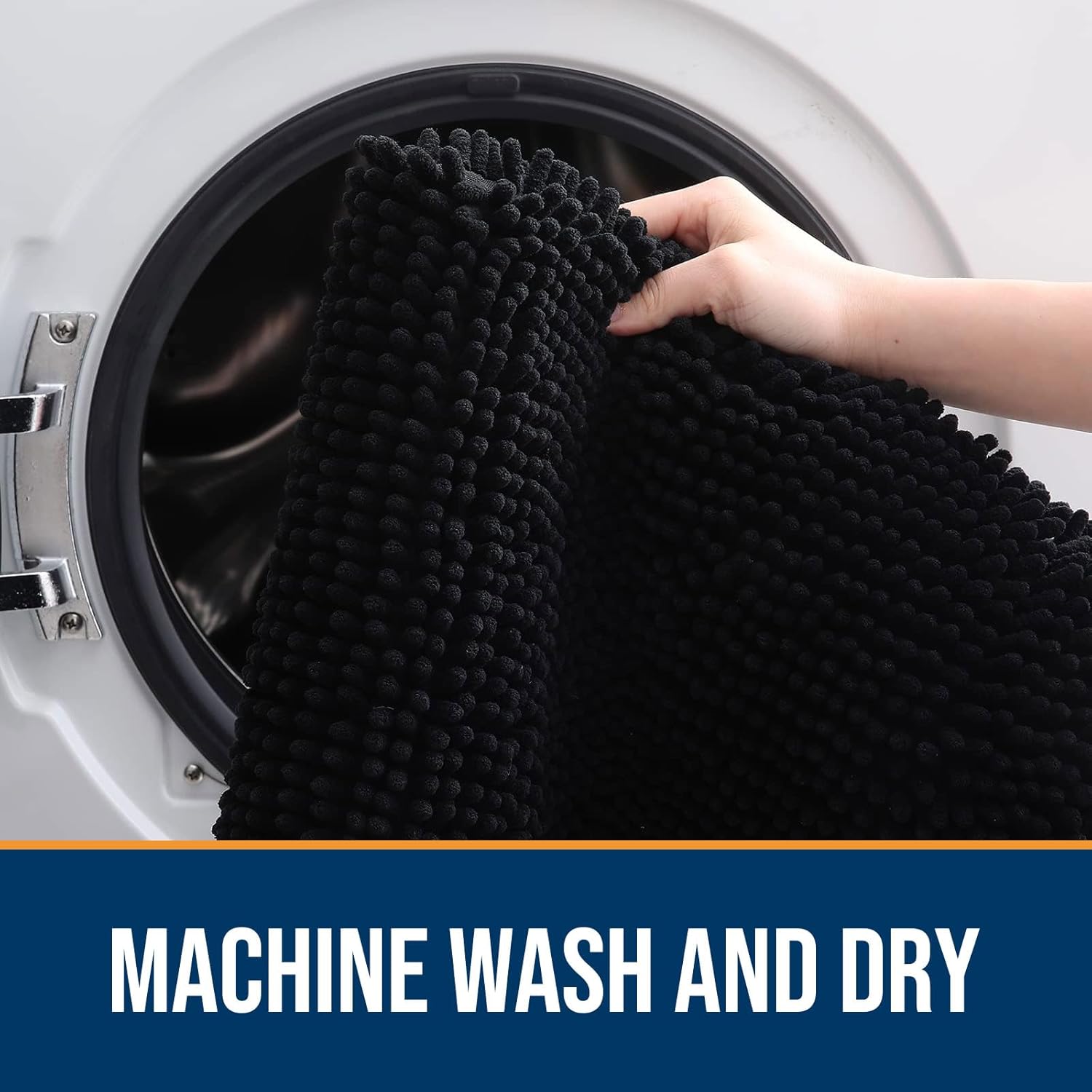 OLANLY Dog Door Mat for Muddy Paws 70x24, Absorbs Moisture and Dirt, Absorbent Non-Slip Washable Doormat, Quick Dry Chenille Mud Mat for Dogs, Entry Indoor Entryway Carpet for Inside Floor, Black