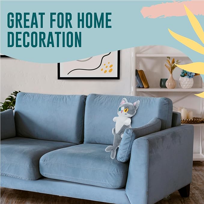 OOPSHANA Long Cat Plush Toy Cute Plushie Hugging Plush Pillow Shark Cat Stuffed Animal for Girls and Boys Grey 19.7"