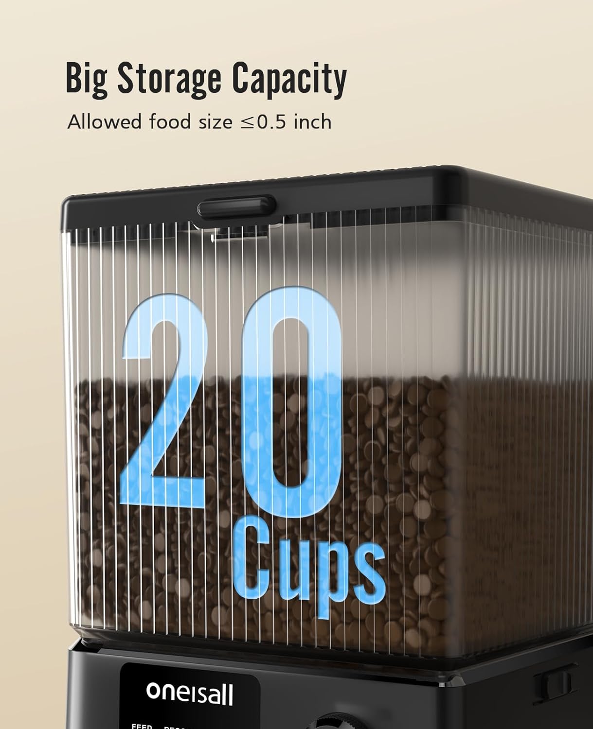 oneisall Automatic Cat Feeder with 5G WiFi, Automatic Cat Food Dispenser for 2 Cats Small Pets, 20 Cups/5L Timed Dry Food Dispenser with APP Control