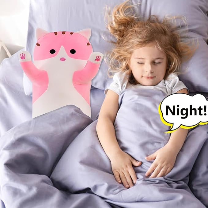 Pink Cat Long Plush Pillow Kitty Stuffed Animals Soft Sleeping Throw Pillow Doll Toy (Pink,18inches)