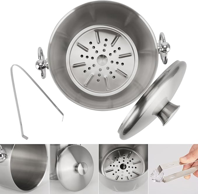 • KEEPS FROZEN LONGER - LRYBBTI 3.0 Qt ice bucket is made of double wall stainless steel for quality insulation. It is more efficient to keep your ice frozen. Comes with an airtight lid for frozen temperature locked up to 6 hours.