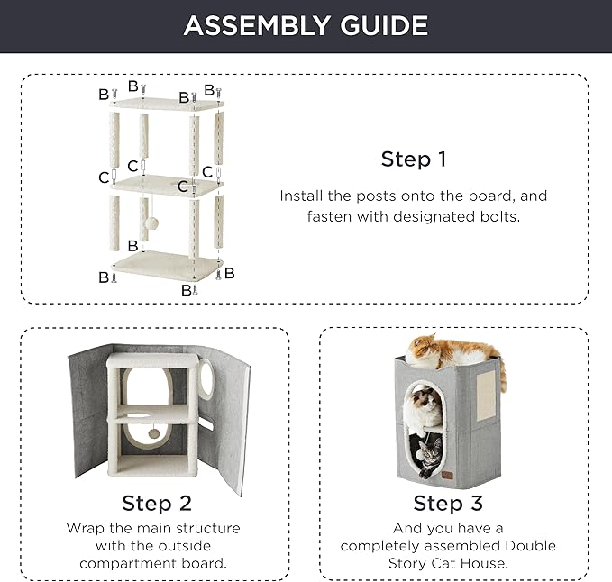 - Pet-Safe Design: This 2-level cat house is crafted with CARB Certified high-strength medium density fiberboard and plush, gentle lambswool fabric for added comfort. Plus, it's got a sturdy sisal scratching board for hours of kitty entertainment.