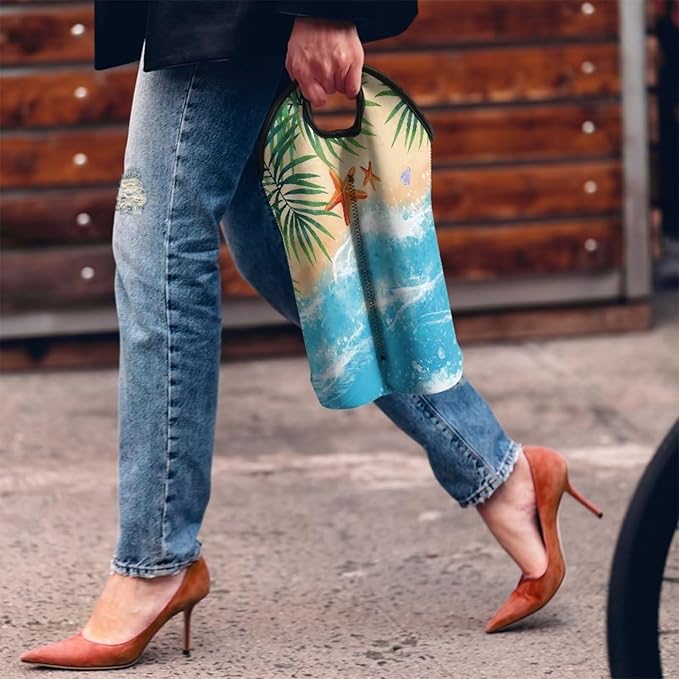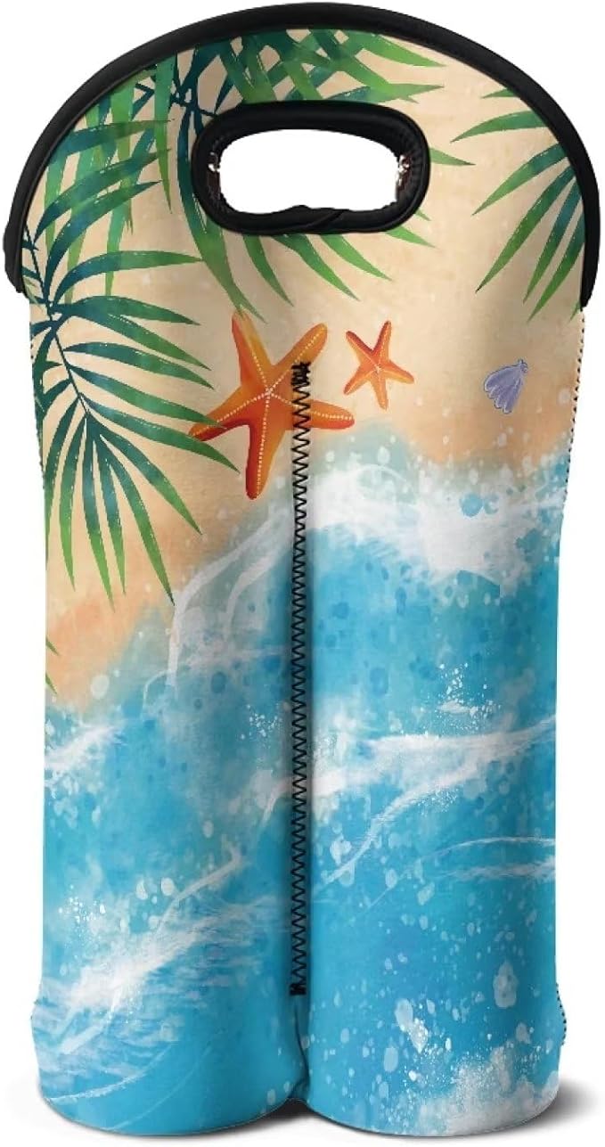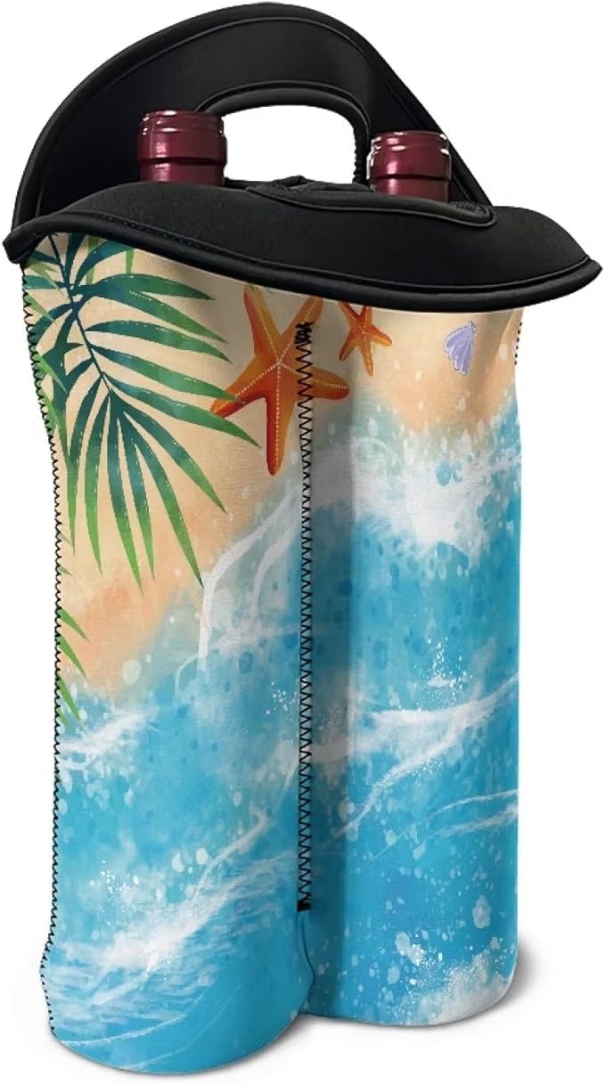 doginthehole 2 Bottle Wine Carrier Beach Theme Travel Insulated Wine Carrying Case Cooler Tote Bag Wine Bottle Holder Neoprene Champagne Bottle Protective Bag Wine Accessories Gift for Women Men