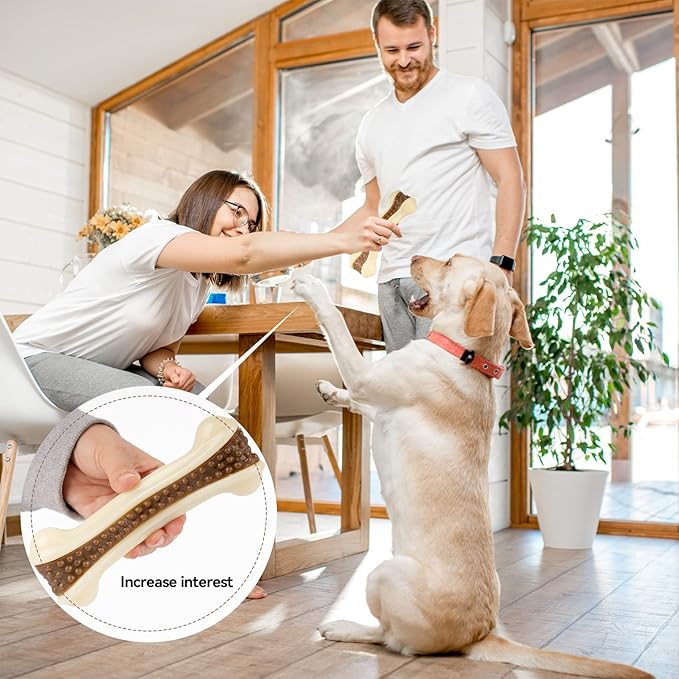 - ♫【Beef Flavor Dog Chew Bone】This is an interactive dog toys with an authentic beef flavor that is highly appealing to dogs, making them more willing to engage in interactive play or games. It can be used for daily indoor or outdoor obstacle training, tracking training, bite and catch games, and more. It also enhances the bond and trust between dogs and humans, fostering a strong sense of understanding and cooperation.