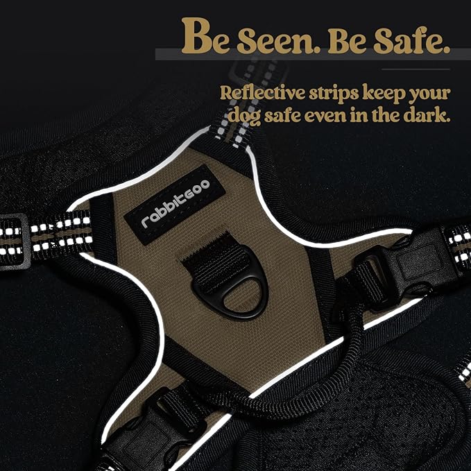 rabbitgoo Dog Harness No Pull with 2 Leash Clips, Adjustable Soft Padded, Reflective Oxford No Choke Pet Vest with Easy Control Handle for Puppy, Beige, XS
