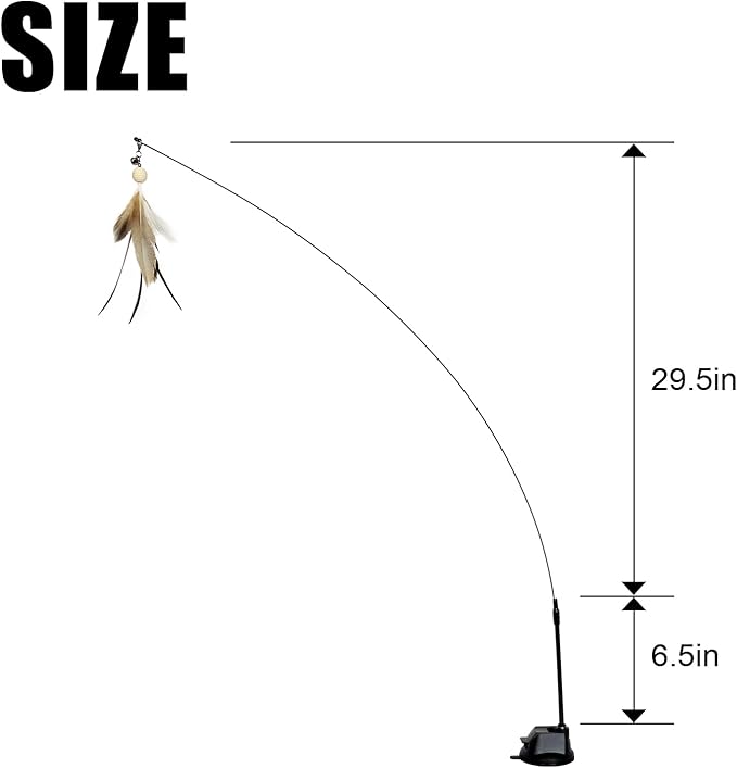 - 【Suction cup design】The suction cup is sticky tightly and easy to install on the smooth surface, such as window, marble, wooden floor, doors(Not stick to wall, carpet). It achieves automatically entertaining cats. This cat toy unlock two ways to tease cats: ① You can either hold the cat wand to interact with cats. ② when you’re tired or busy, insert the cat wand into suction cup, it will be a automatic cat wand toy.