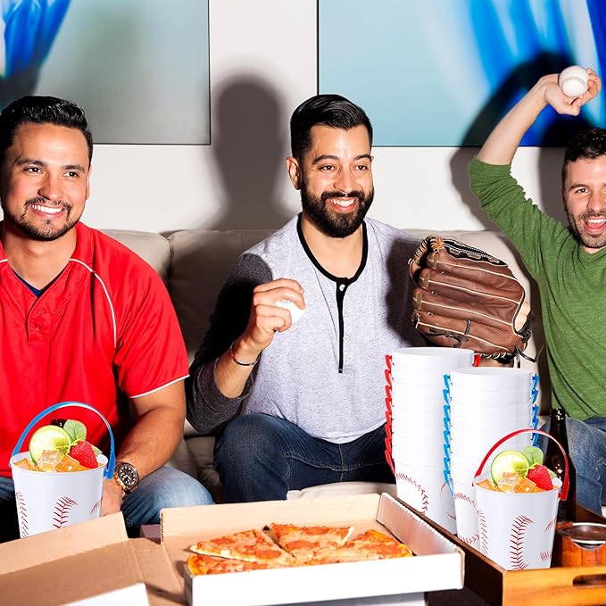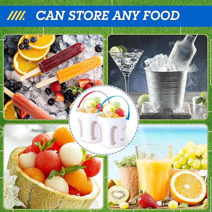- Baseball Theme Design: our baseball theme rum buckets for drinks nicely combine function with aesthetics; The design, infused with a baseball theme, creates a distinctive statement piece that's sure to impress party guests; Their aesthetically pleasing white, red, and blue design creates an engaging environment, making them the ideal addition to your sporting events, theme parties, or casual gatherings with fellow baseball enthusiasts
