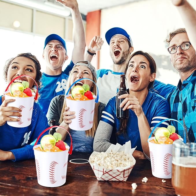 • Baseball Theme Design: our plastic buckets for party nicely combine function with aesthetics; The design, infused with a baseball theme, creates a distinctive statement piece that's sure to impress party guests, which are ideal accessories for baseball party