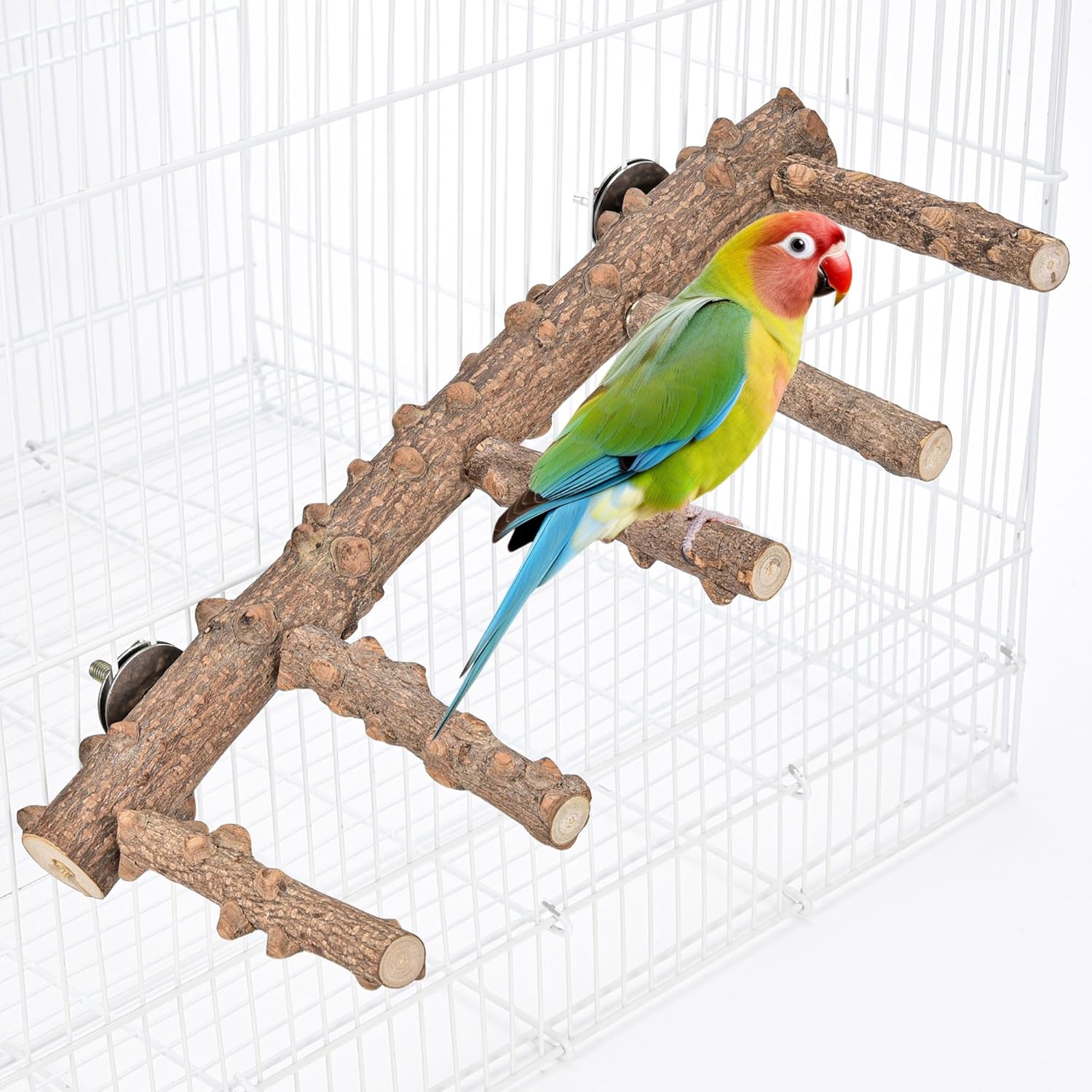 - High Quality Natural Wood: Bird ladder perch cage is mainly made of natural fruit tree hardwood. The surface of the bird perch is uneven and the bird will not slip when standing on it. Durable, non-toxic, non-harmful, non-cracking, for pet bird's chewing and playing, it is a favorite toy for birds. Nuts and washers are made of stainless steel, durable and trustworthy quality.