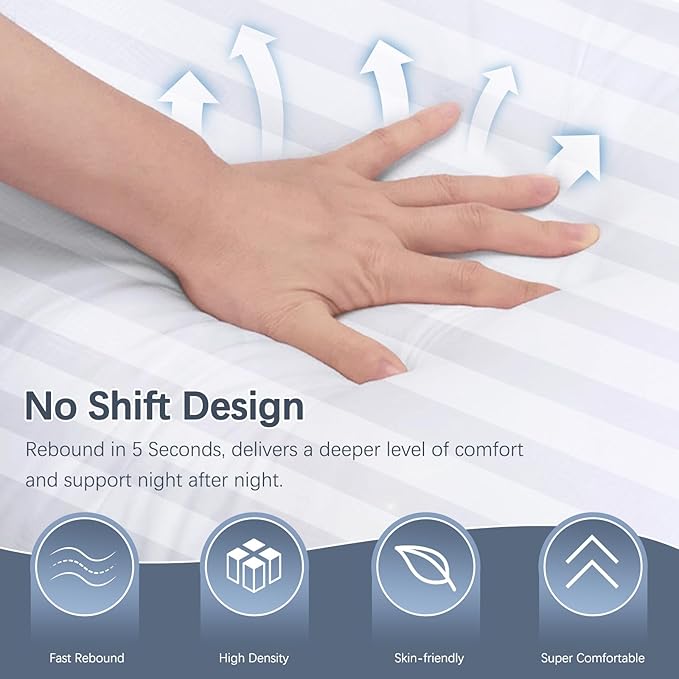 - Luxury at Home: The no-shift construction ensures that the pillows never go flat or slip from underneath. Compared with traditional synthetic fiber, the hollow fiber stuffed inside was crimped with three dimensional helical structured through conjugated spinning to provides a perfect bulkiness. All product materials are carefully selected and strictly inspected, buy with confidence! If you have any question or problem, just contact us and we'll be quick to help you!