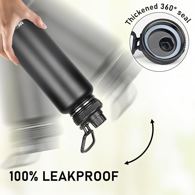 - â¨ăFulfills Your Needsă A high quality stainless steel water bottle, 1 nozzle cap, 1 flip straw cap, 1 jug cap, 2 straws and 1 straw brush, 1 cup cleaning brush. Meet your every need, make drinking easier and more convenient. Each lid is sealable and 100% leak-proof, so you don't have to worry about getting it wet in your bag. The large opening of the stainless steel water bottles allows you to quickly fill it with ice or fruit and cleaning is easier.