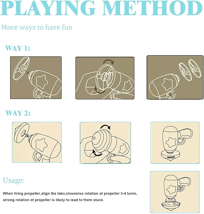 - Easy to play & aim: First install the propeller, turn it clockwise 3-6 times, aim, and pull the trigger to launch, your cat will have great fun with this fetch toy. Please don't rotation the discs excessively, otherwise it will affect the service life of the toy.It is convenient to replace it in time when it is damaged, and does not delay the cat to continue to play