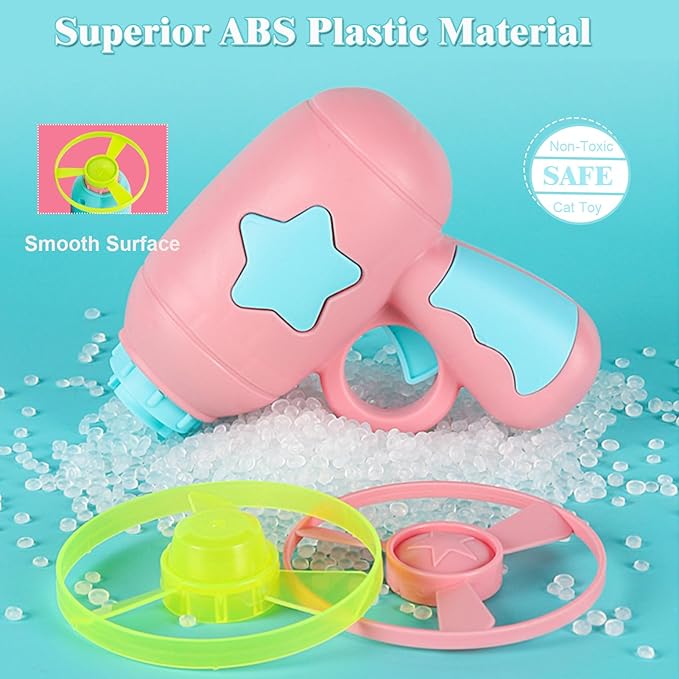 - Premium Cat Fetch Toy Set:Crafted from durable ABS plastic with non-toxic materials, this toy set prioritizes feline safety during interactive play. Its smooth edges and lightweight design ensure effortless flight while protecting cats from injury. Engineered to withstand repeated biting and scratching, the propeller's abrasion-resistant construction promotes long-lasting use. Watch your cat enjoy extended chase sessions with this engaging toy that strengthens the human-pet bond through active play