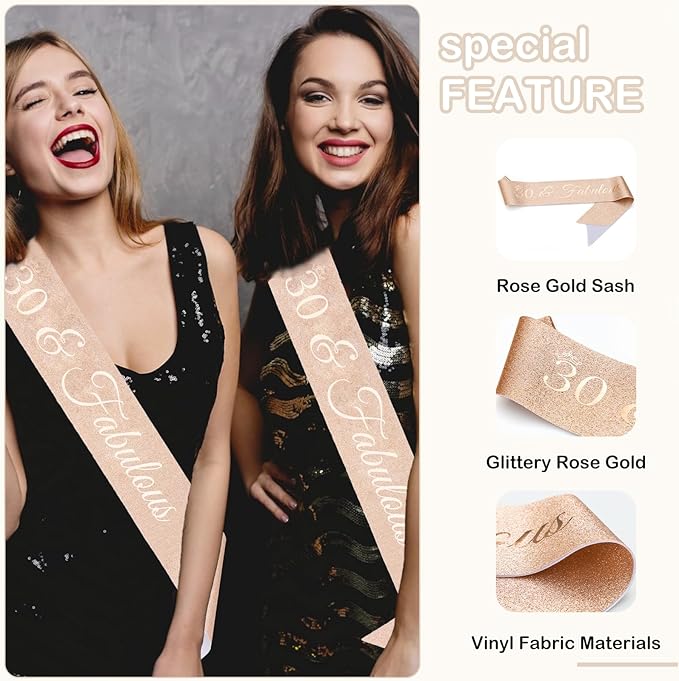 30th Birthday Decoration Sash for Women 30 & Fabulous,30th Birthday Decorations for Her Birthday Party Gift Decorations Favors (30th Birthday Sash)