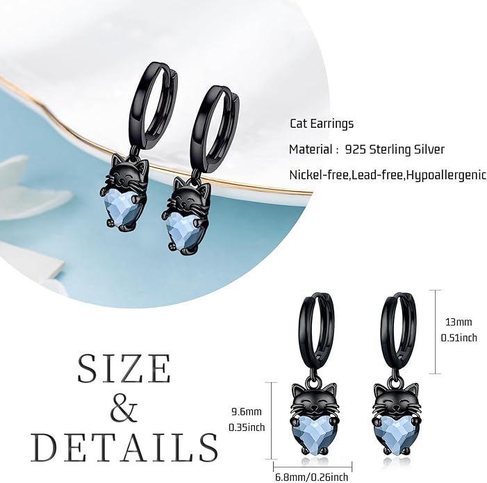 - Design Inspiration: Cat symbolizes freedom,lucky and love. Interesting and elegant cat drop earrings are mysterious and charming, bring vitality and freshness to life. It is very suitable for giving to little girls and your lovers.