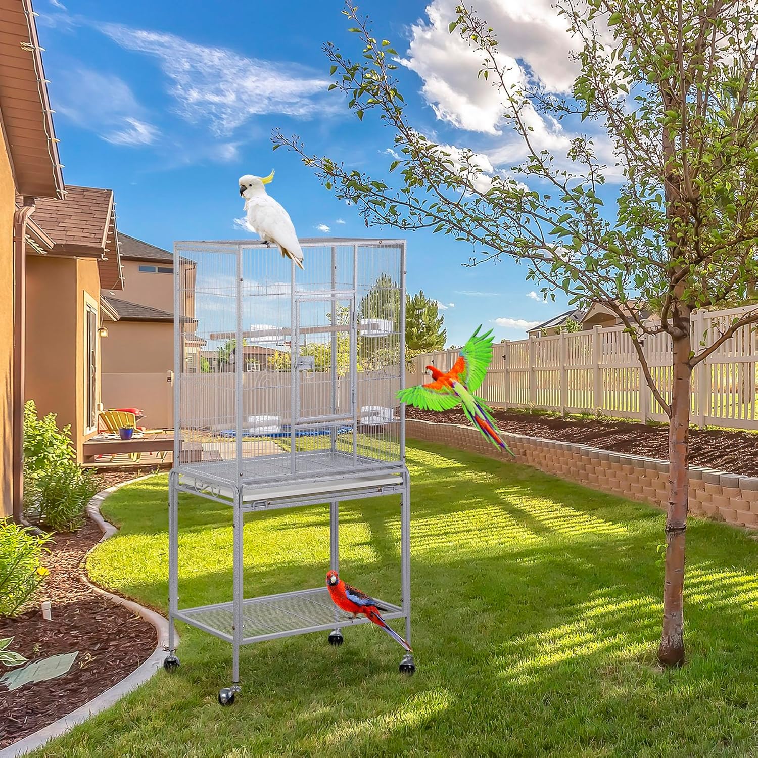 ZENY 53-Inch Bird Flight Cage, Wrought Iron Standing Large with Rolling Stand for Cockatiels Pet Parrot Parakeet Lovebird Canary Finch (White)