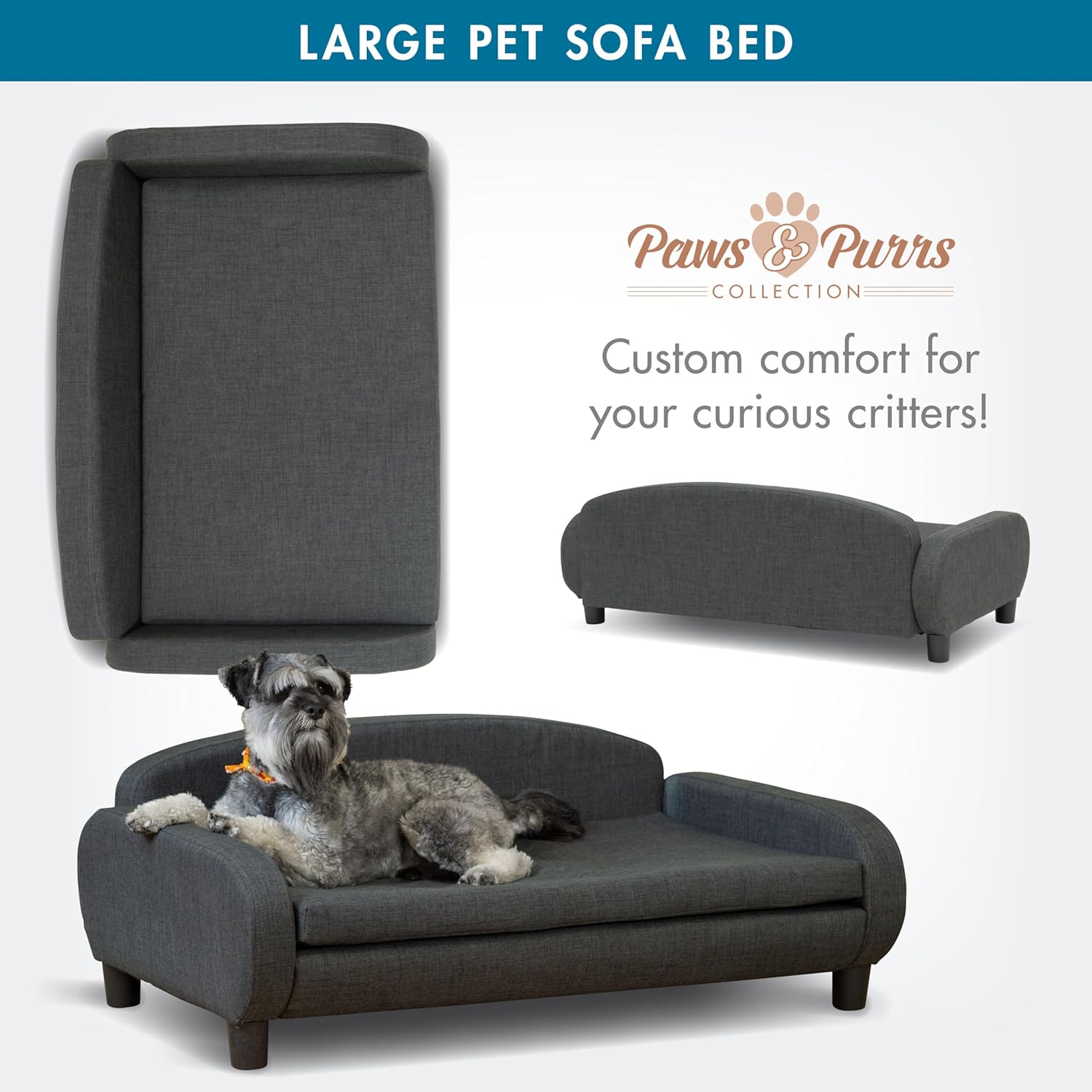 Paws & Purrs Multi-Cat Sofa Bed – 41.5″ Wide Elevated Pet Couch with 3″ Foam Mattress, Removable Machine-Washable Cover – Stylish Indoor Pet Furniture for Two or More Cats and Dogs, Gray