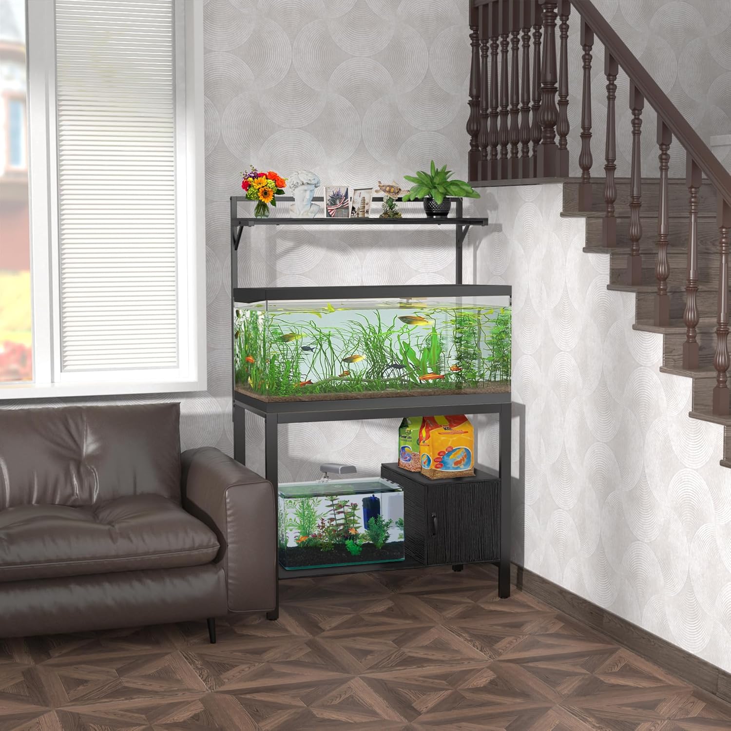 - Holds Two Aquariums: Tabletop size is 36.6"*18.5", specially fits a 40 gallon breeder aquarium and 50 gallon fish tank. Bottom shelf can accommodate a second small betta fish tank (3-10gallon). You can also put 40 gallon reptile tank on the tabletop. Please measure your tank size before purchase.