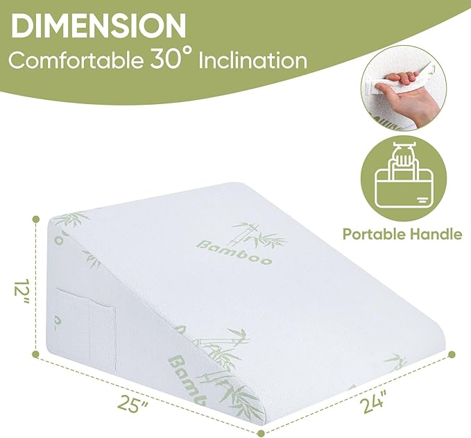 - Multi-Purpose Comfort: Relief from chronic back and neck pain, digestive woes, and restless sleep is now possible. Improper posture causes physical issues, but our wedge pillow provides instant relief for acid reflux, heartburn, snoring, and vertigo while improving air circulation. Elevating legs improves blood circulation, easing tension in leg, hip, and knee muscles. Ideal post-surgery & pregnancy recovery aid - the perfect gift that shows you care!