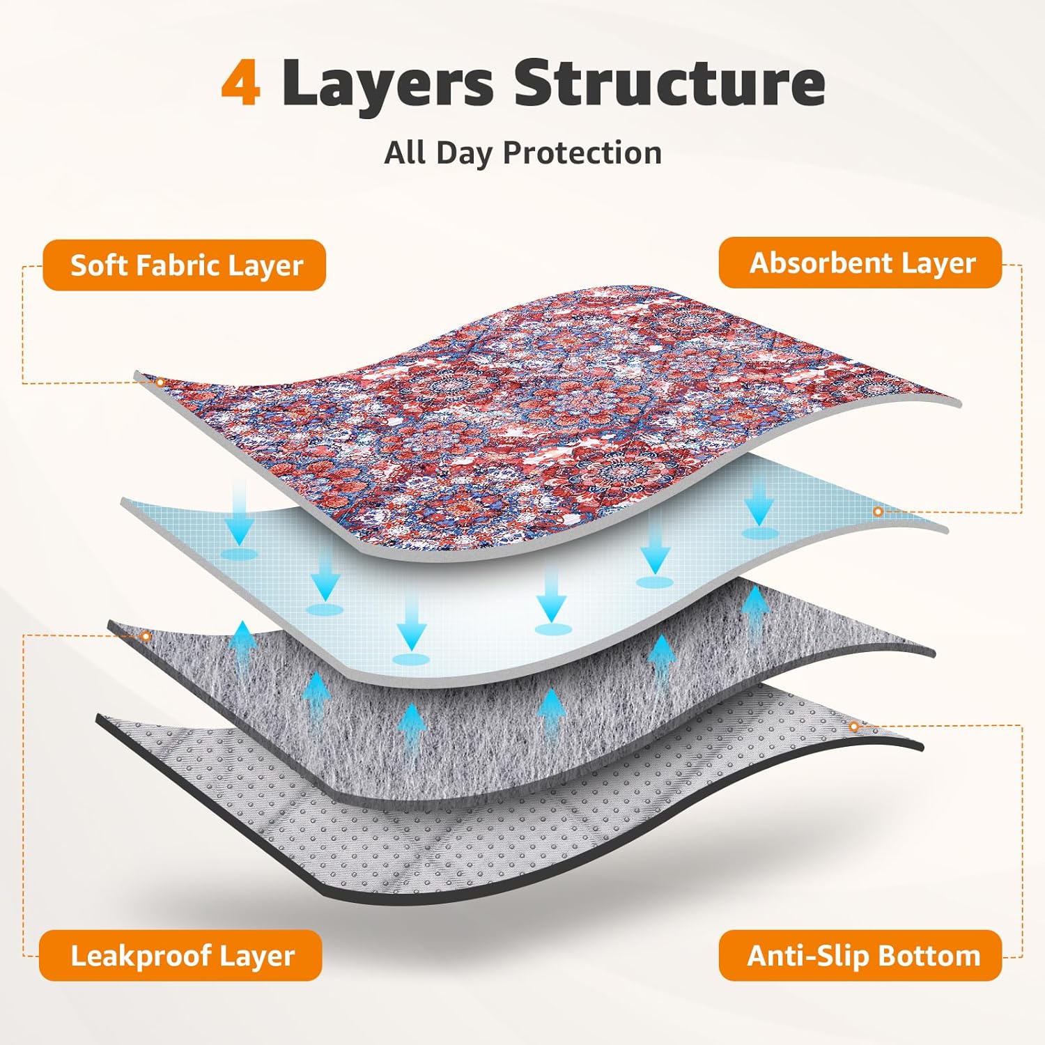 - SUPER ABSORPTION & LEAKPROOF: LOOBANI washable pee pads for dogs is made from four layers of material, which is highly water-absorbent and leak-proof. The absorbent layer quickly absorbs dog urine, waterproof layer can effectively prevent liquid leakage leaving odor. Keep the floor or carpet clean and dry for dogs