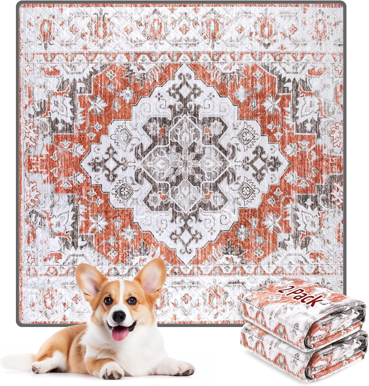 LOOBANI Washable Pee Pads for Dogs, 2 Pack Super Absorbent Reusable Puppy Pads Leakproof Dog Traning Pads, Waterproof Non-Slip Whelping Pad for Floor, Playpen, Crate, Couch-36 x36 (Red-Orange)