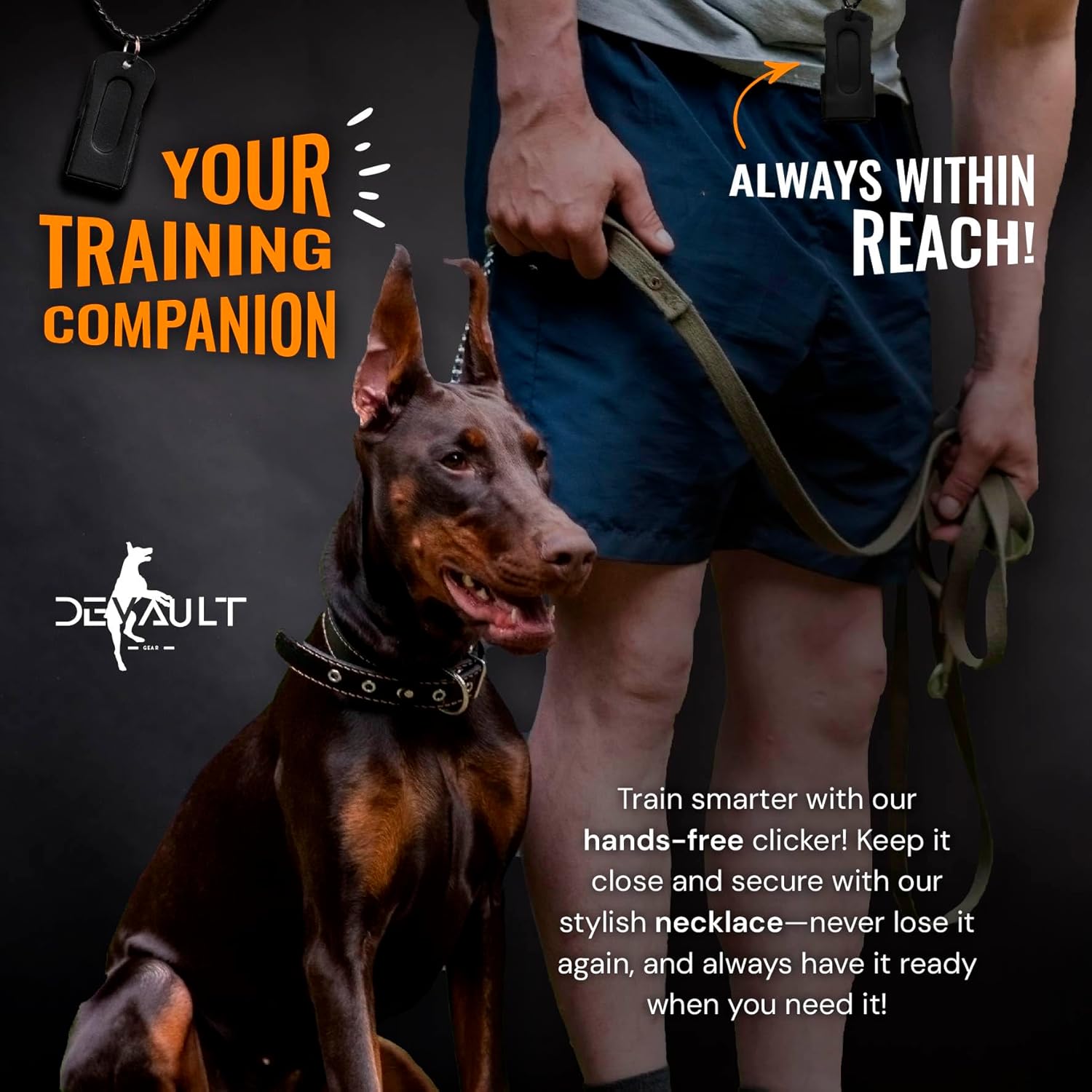 - Stand Out with Class: In a sea of ordinary clickers, our elegant Black Puppy Training Clicker sets you apart. Embrace sophistication and style while improving your dog agility. Our dog accessories clicker product has a black exterior and also features a braided leather necklace with a magnetic metal clasp that matches your style perfectly