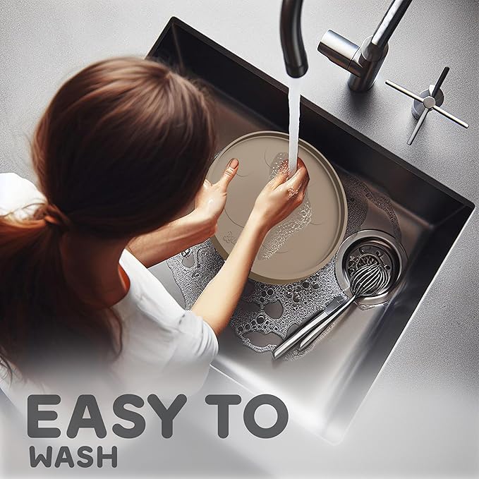 - RAISED EDGES KEEP THE MESSES WHERE IT BELONGS: Keep Your Home Spotless & Enjoy Hassle-Free Dinnertime with Your Furry Friend! Whether they eat with enthusiasm or like to play with their food, our 10" Round dog food mats for floors waterproof are specially designed to reduce cleanup time for both wet and dry foods. Treat yourself and your furry pal to a cleaner, more enjoyable mealtime experience.