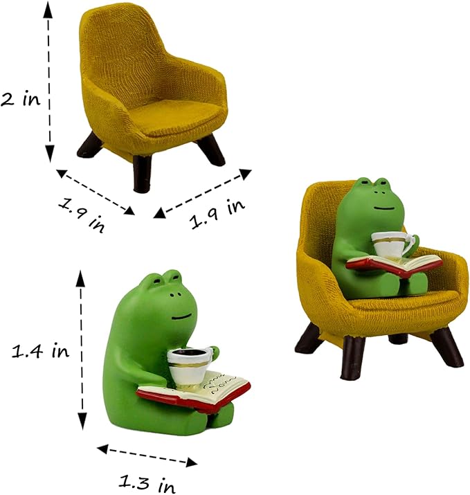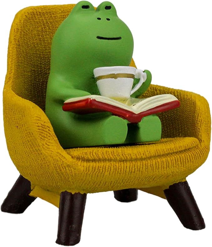 - Cute Desk Accessories: This set of miniature figurines includes a frog reading a book while enjoying a cup of coffee and a charming mini sofa