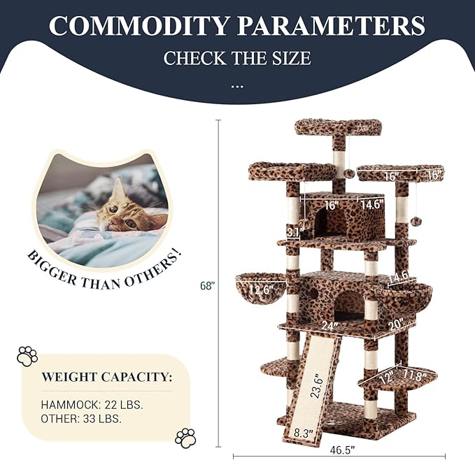 Allewie 68 Inches Cat Tree/House and Towers for Big Feline/Scratching Post/Multi-Level Large Kitty Climbing Tree with Condo/Leopard Print