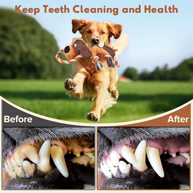 - Interactive Dog Toys & Improve Relationship: With a rope design and crinkle paper in the ears, this toy encourages interactive play between you and your furry friend. It's great for bonding, reducing stress, and creating lasting memories