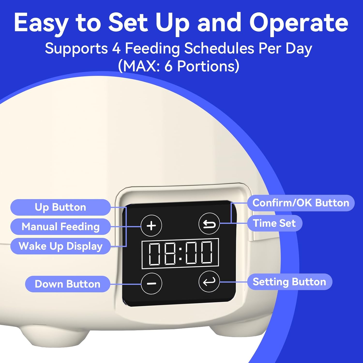 - 【PROGRAMMING TIMED FEEDING, SCIENTIFIC PET CARE】PAPIFEED auto cat feeder can customize healthy feeding schedule according to pet's needs. It can set 1-4 meals/day, 1-6 portions of food per meal, accurately control feeding amount, avoid overfeeding or starvation, and scientifically manage pet's diet and health. Even if you are on a business trip or traveling, the feeder will still strictly implement the set plan to ensure that your pet eats on time, so you can rest assured at any time.