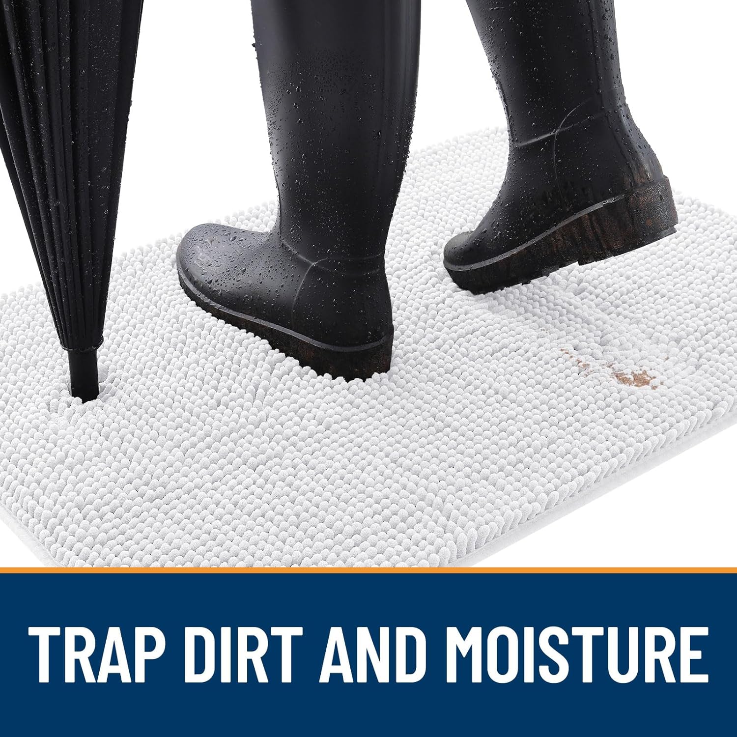OLANLY Dog Door Mat for Muddy Paws 70x24, Absorbs Moisture and Dirt, Absorbent Non-Slip Washable Doormat, Quick Dry Chenille Mud Mat for Dogs, Entry Indoor Entryway Carpet for Inside Floor, White