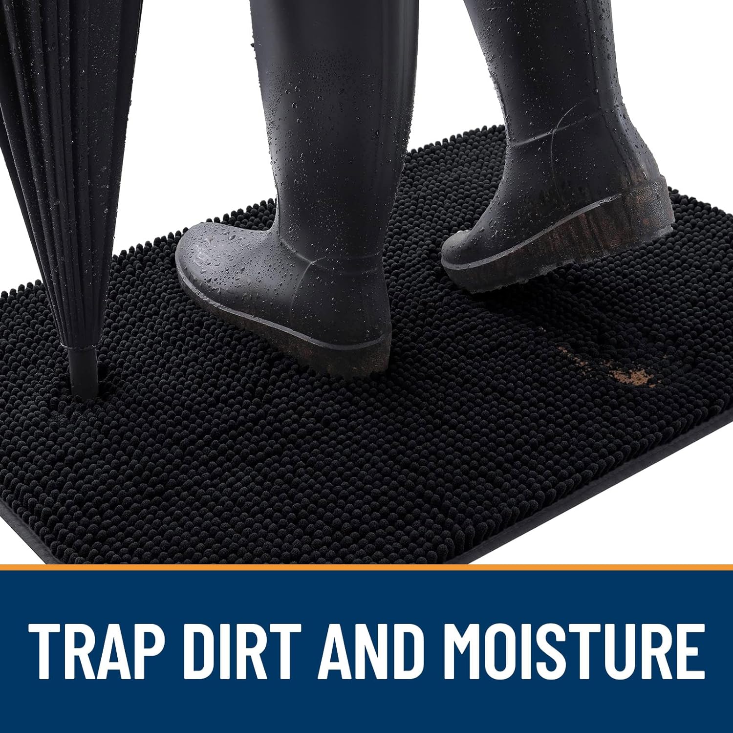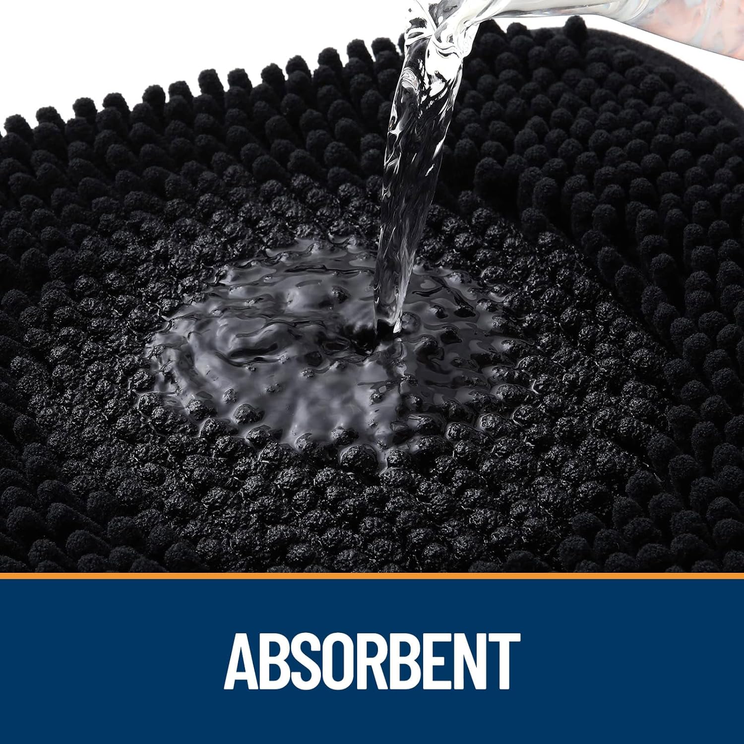 OLANLY Dog Door Mat for Muddy Paws 47x32, Absorbs Moisture and Dirt, Absorbent Non-Slip Washable Doormat, Quick Dry Chenille Mud Mat for Dogs, Entry Indoor Entryway Carpet for Inside Floor, Black
