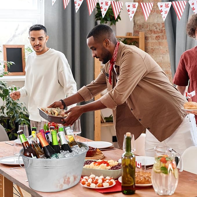 • Multifunctional Ice Bucket: This ice bucket is a must-have tool for your party! Made of iron galvanized material, it has a capacity of 3.5 gallons to meet your needs for different occasions.