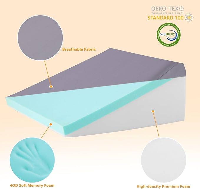 - Memory Foam Top Layer: Enjoy the 1.5-inch gel-infused memory foam top layer for a relaxing night's sleep, supported by a high-density medical-grade foam wedge core to provide optimal firmness and support.