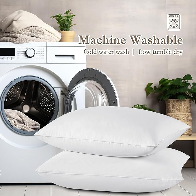 - 【USE TIP & EASY CARE】 - Fluffing your pillows daily by tapping or squeezing can help them return to their normal shape and force the inside air making the pillows fluffy again. The feather pillow is machine washable.Machine wash cold separately gentle cycle, tumble dry low.