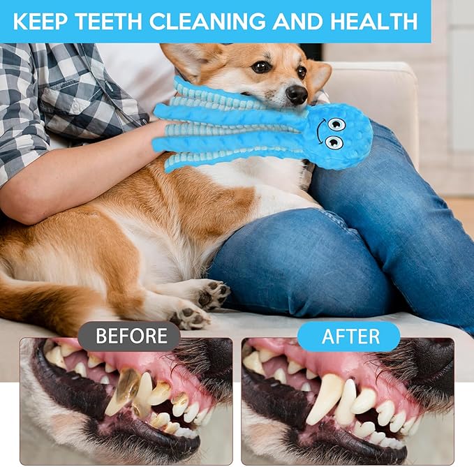 Squeaky Dog Toys Octopus Stuffed Crinkle Toy, Puppy Chew Toys for Teething, Durable Tug of War Interactive Plush Dog Toys for Puppies Small, Medium, and Large Dogs