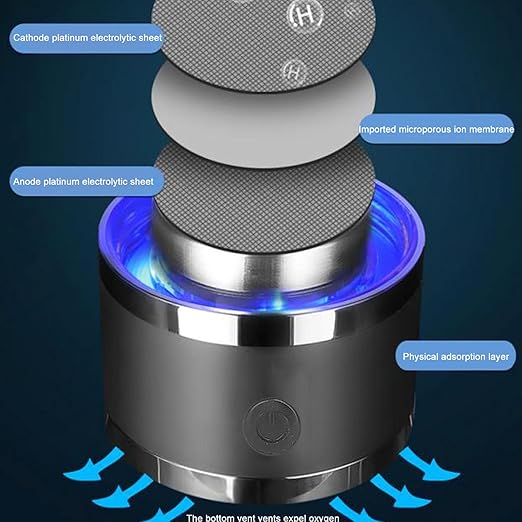 - Advanced Technology: Utilizing solid polymer electrolyte (SPE) and proton exchange membrane (PEM) technology, this hydrogen water bottle quickly electrolyzes water to separate and release H2 and O2, resulting in hydrogen rich water. The platinum coated electrolysis plate and SPE hydrogen oxygen separation technology replace filter sticks, offering higher hydrogen content, no or , and the ability to electrolyze purified water.