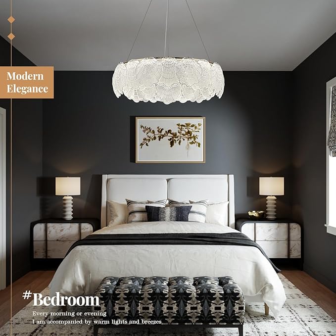 - 【Crystal Shell Shape Glass Chandelier】 - Surrounded by exquisite shell crystal glass, brings an elegant and stylish vibe for dining room, bedroom, living room, bar, foyer, cafe, and restaurant