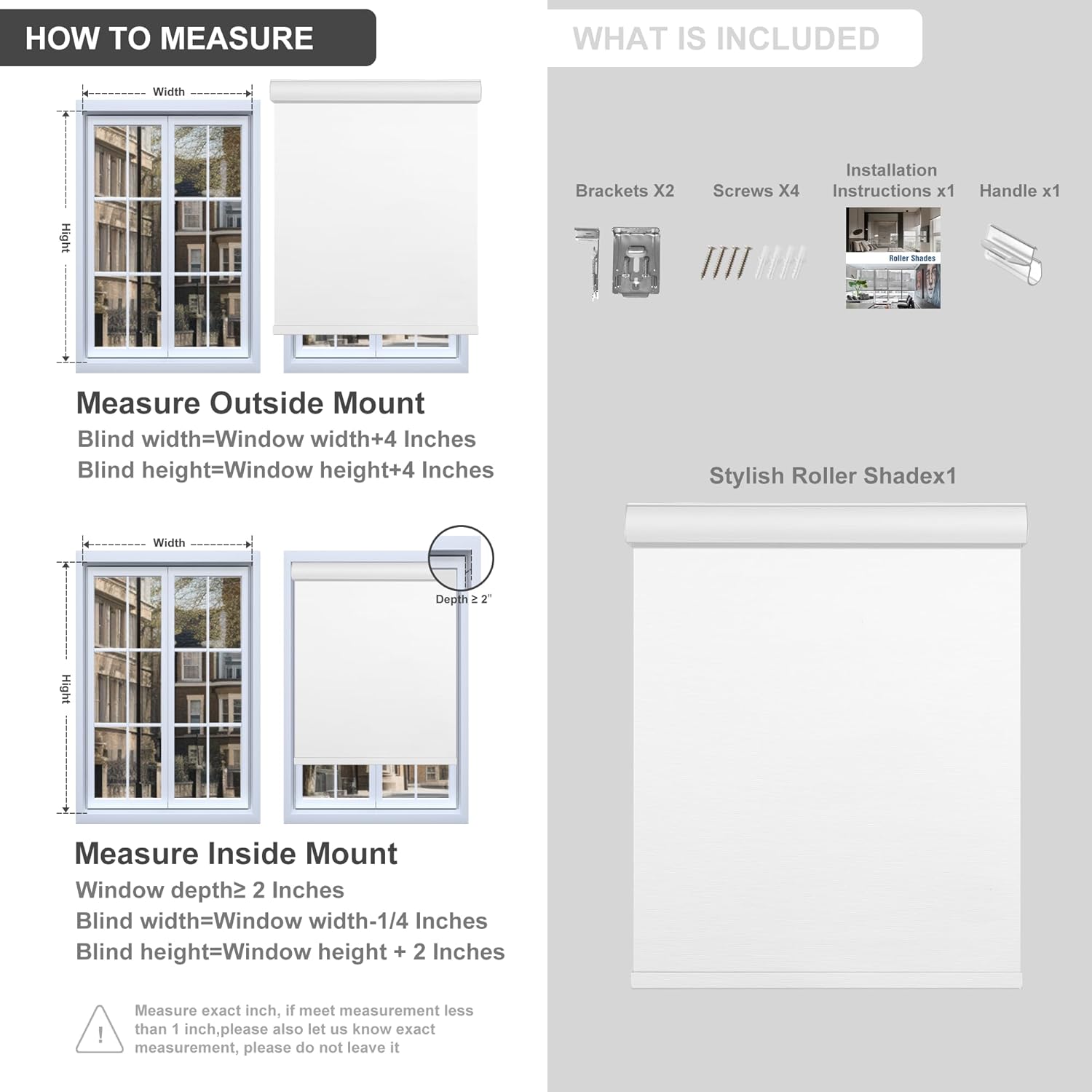 Boolegon Blackout Roller Shades for Windows,Cordless,Roller Blinds for Windows,Thermal Insulated Fabric UV Protection,Window Blinds Shades for Home,Office,Bedroom,Door,Blackout-Pure White,Custom Now