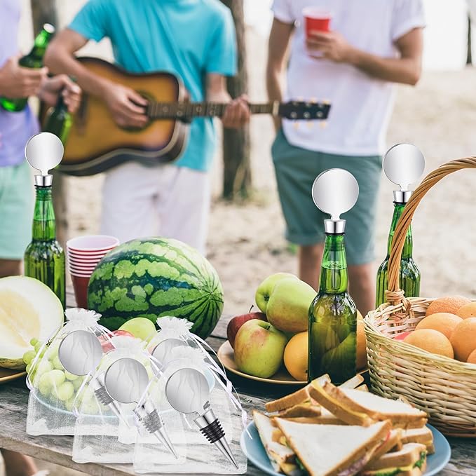 • Wide Range of Usages: the round wine stoppers are not just limited to sealing wine bottles but can double as charming little tokens or wedding favors; Their versatile usage sets them apart from other simple wine toppers; They can serve as beautiful beer bottle stoppers, champagne bottle stoppers, or even soda bottle caps during various occasions like wedding parties, bar party, baby showers, birthday party, family reunions and other occasions