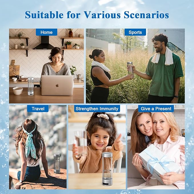 - Exquisite Health Gift - Health is an ongoing pursuit, and a hydrogen water bottle is the ideal companion to achieve your health goals. By drinking hydrogen water, it can bring positive effects to the body and improve overall health. Our hydrogen water bottles are beautifully packaged with a full range of accessories, whether for personal use or as a gift, it is a unique and practical choice that will bring benefits and happiness to you and those you care about.