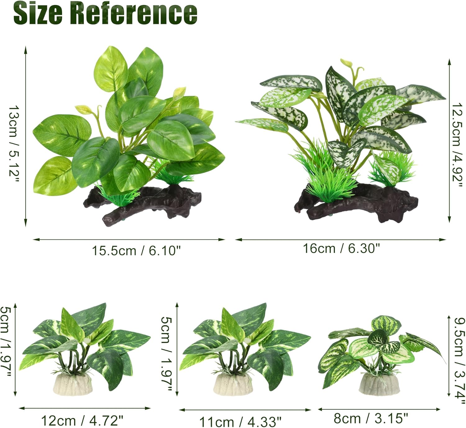 Aquarium Plastic Plants, Driftwood Betta Silk Plants, Silk Plants Aquarium Set Decor, Silk Aquarium Plants for Betta Fish (Green, 5pcs)