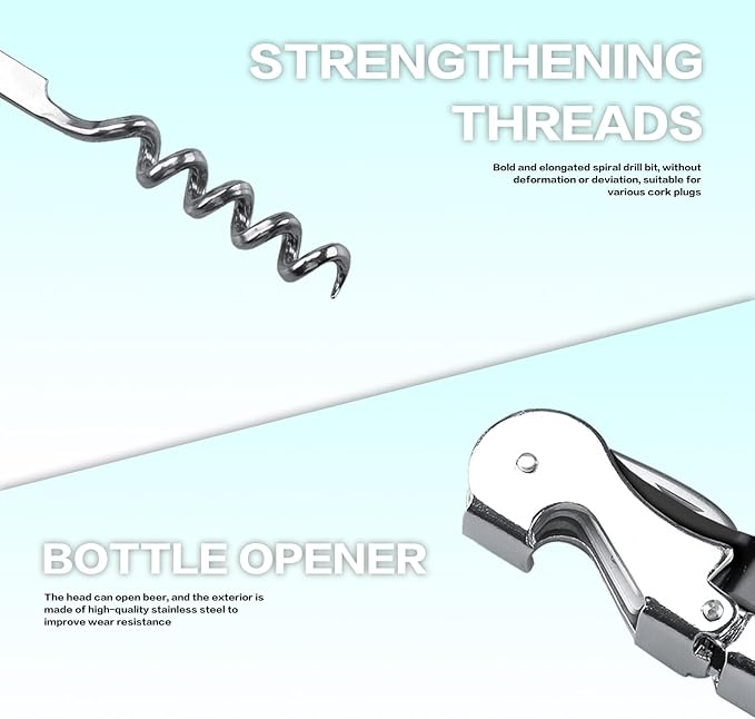 - 【 High strength corkscrew】Easily remove corks with this durable wine key opener made from high quality stainless steel, perfect for both personal and professional use.