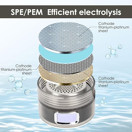 - Efficient Hydrogen Production - This hydrogen water bottle uses SPE and PEM technology and is equipped with high-quality platinum titanium sheets, making hydrogen production more efficient and pure. Combat oxidative stress effectively and elevate your health with ease.