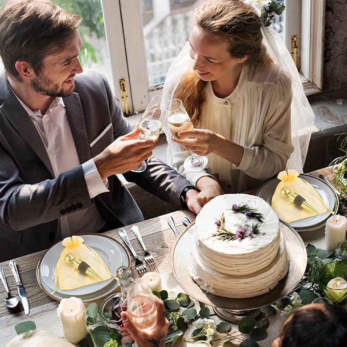 48 Pcs Gold Wine Stoppers Bulk Wine Saver Wedding Party Gifts Favors for Guests Stainless Steel Bottle Stopper Wine Corks Beverage Vacuum Silicone Stopper with Sheer Bags for Wedding Bar