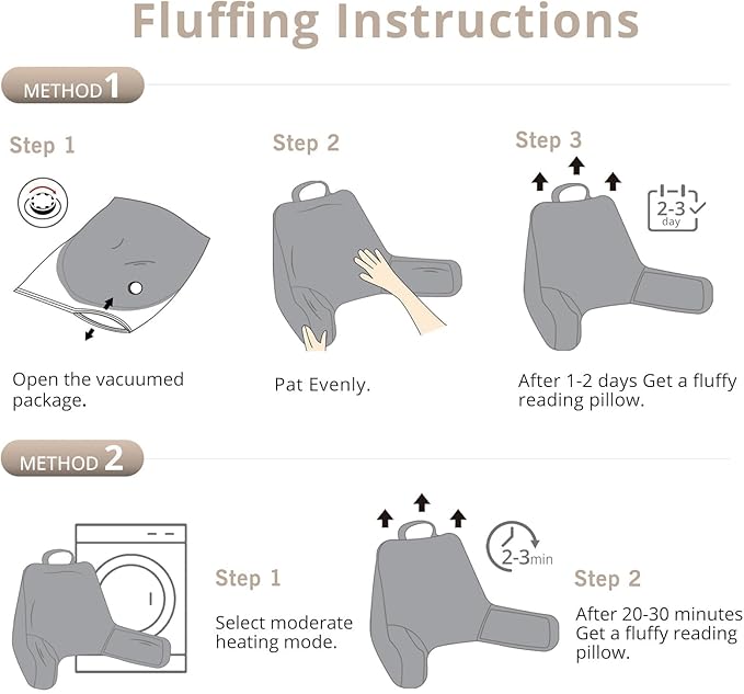 - Vacuum Packaged for Shipping Purpose: Our bed reading pillow is vacuum-compressed for convenient transportation. Please remove the packaging bag and let it sit for 24-48 hours until the reading pillow is fully expanded to its original shape.