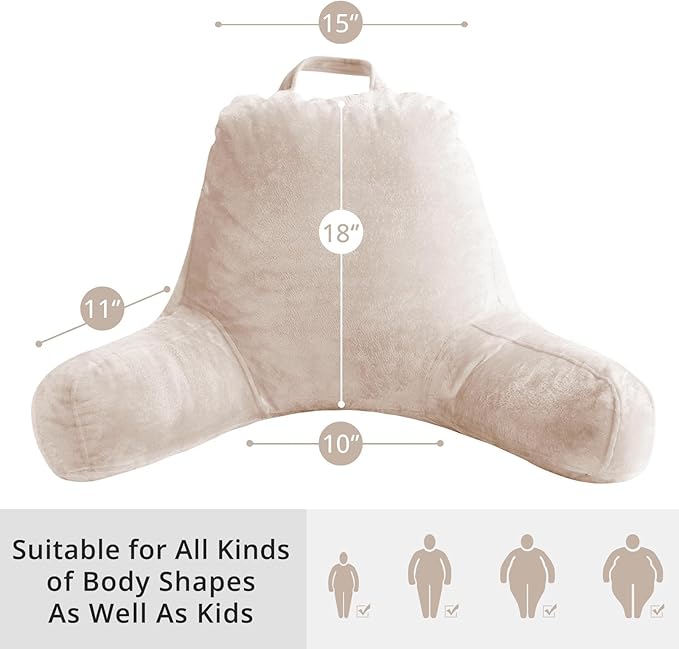 Sasttie Reading Pillow for Sitting in Bed Adult, Velvet Back Pillow for Bed Sitting Up, Backrest Back Support Chair Pillow, College Dorm Essentials for Girls and Boys, Beige