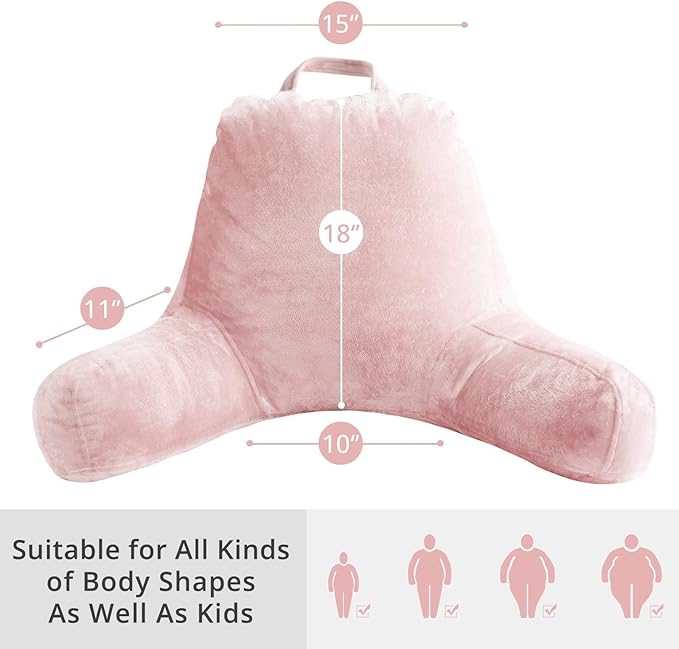 Sasttie Reading Pillow for Sitting in Bed Adult, Velvet Back Pillow for Bed Sitting Up, Backrest Back Support Chair Pillow, College Dorm Essentials for Girls and Boys, Pink