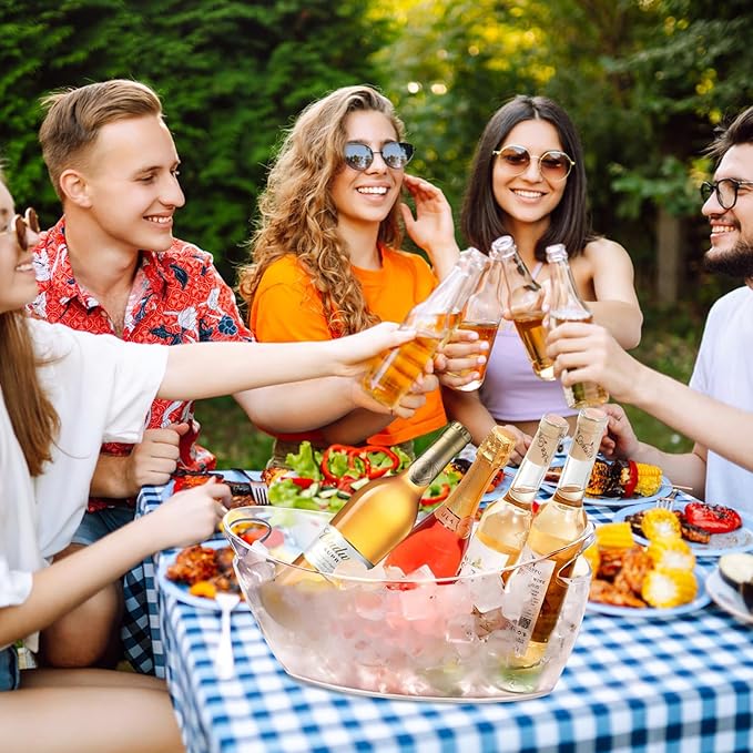 • 【Ice Buckets for Parties】The stylish clear finish of this beer, wine, or champagne bucket will easily adapt to any party. Transparently modern and minimalistic, this acrylic ice bucket would look dazzling at a big celebration and simply stylish at a cook-out. Use it again and again, this ice bucket is the clear choice for weddings, date nights, parties, barbeques, and any other occasion!